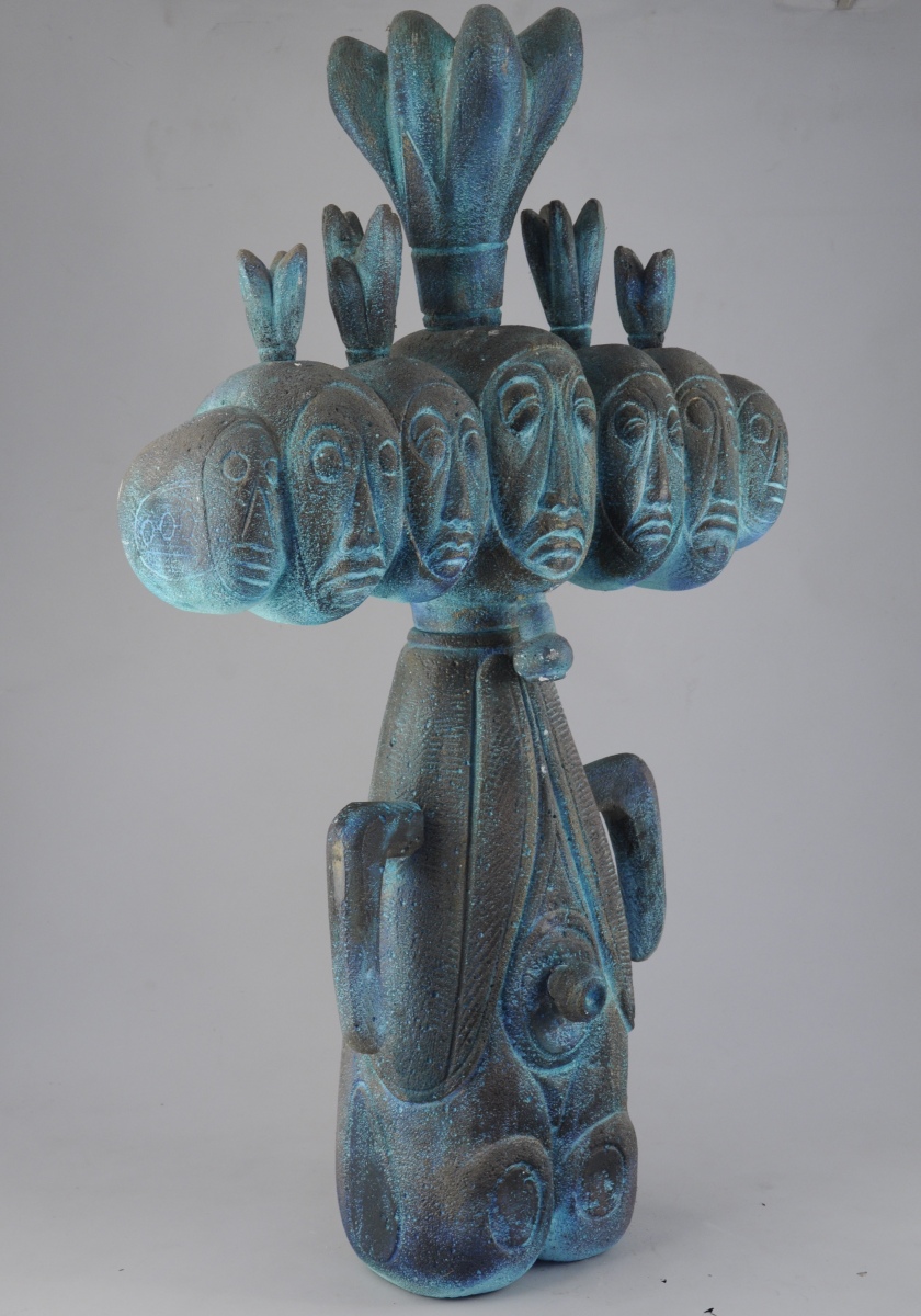 Sculpture en siporex à patine bleue, signée, 10 éléments