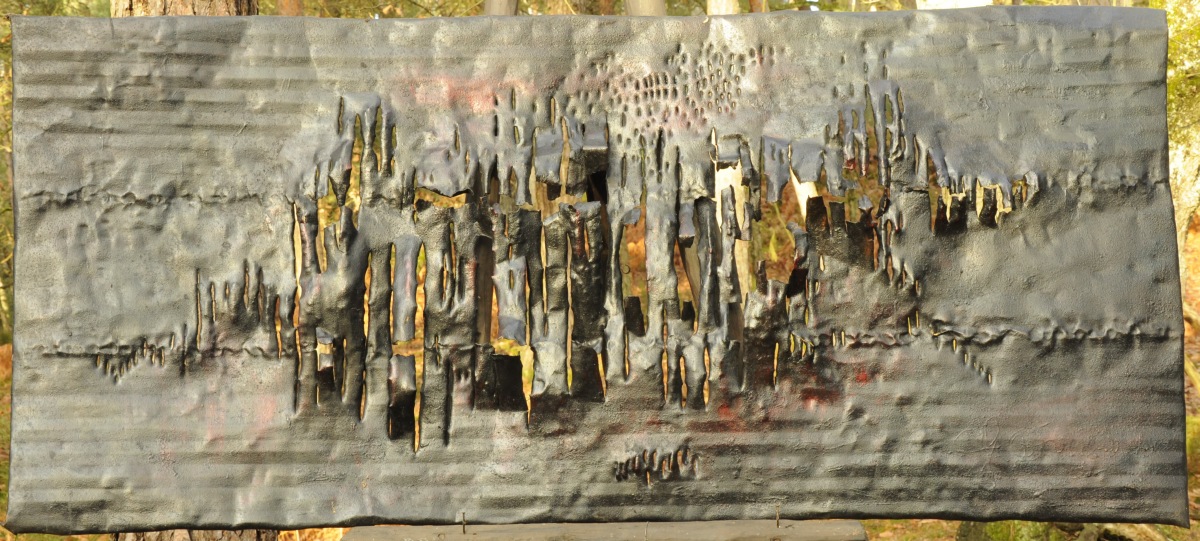 Roger CHOMEAUX, dit CHOMO (1907-1999)Grande empreinteTôle lacérée peinteHaut. 85, Larg....