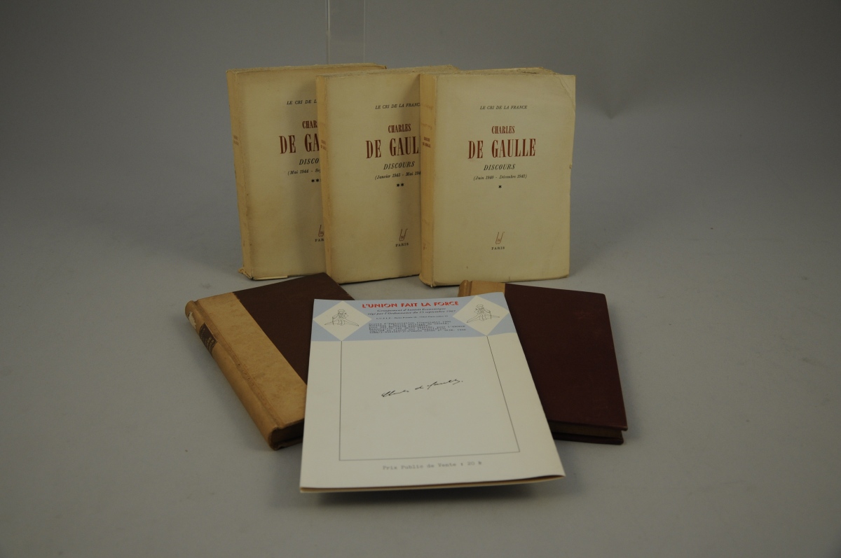 Charles de GAULLE, "Une mauvaise rencontre", Association les trois trèfles, 1990 ; "Le fil de l'épée", éd. Berger-Levrault, 1944 ; "Vers l'armée de métier", éd. Berger-Levrault, 1945 ; "Discours 1940-42, 1493-44, 1944-45", éd. Egloff, Paris, 1945, 3 vol.