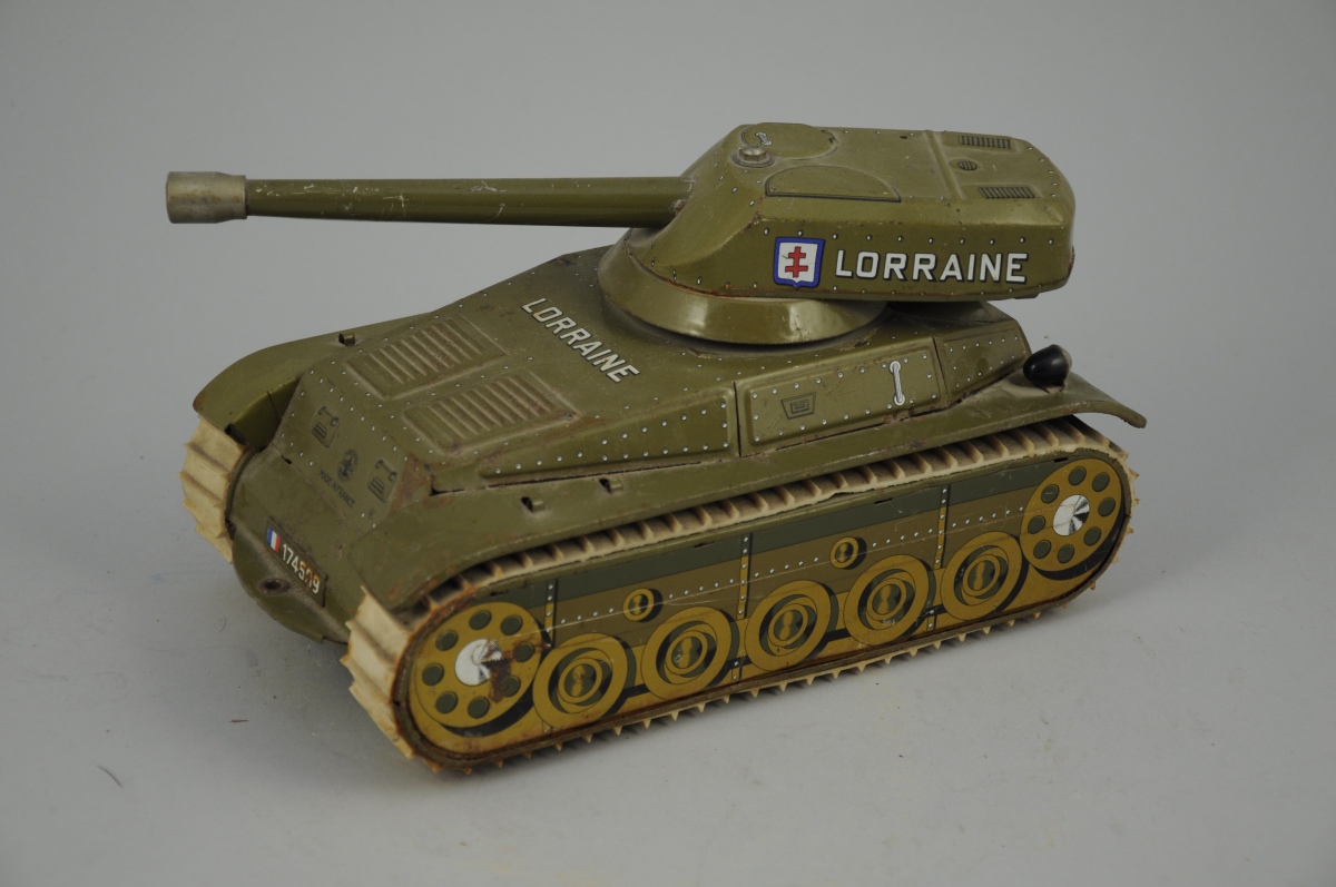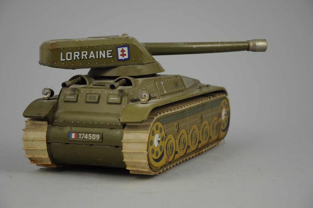 JOUSTRA. Char Lorraine n°174509. Jouet à pile en tôle et plastique. Haut. 13, Larg. 14, Long. 26 cm.
