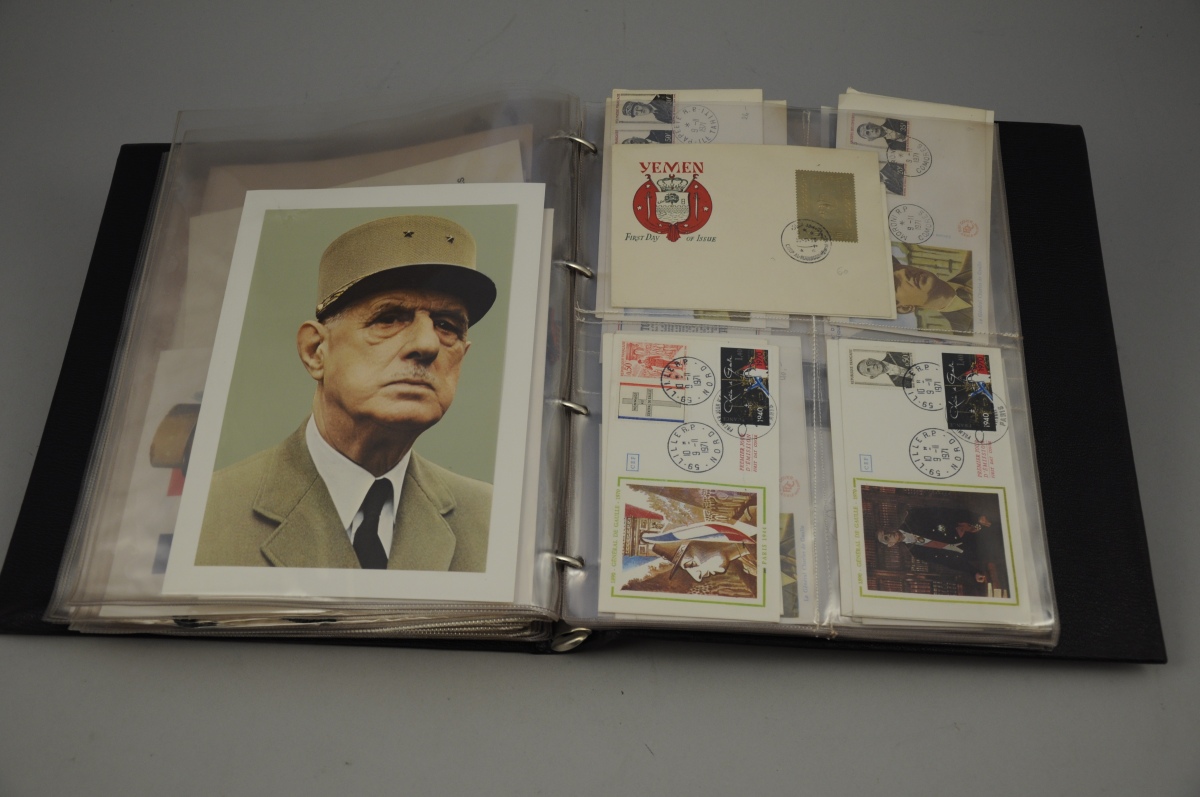 CLASSEUR PHILATÉLIQUES: IN MEMORIAM. 21 pochettes comprenant enveloppes premier jour et documents, etc.