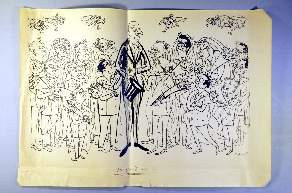 SENNEP. "Un grand mariage", Colombey les deux églises, de Gaulle ne passera pas...3 tirages de dessins. 27,5 x 37,5 cm.