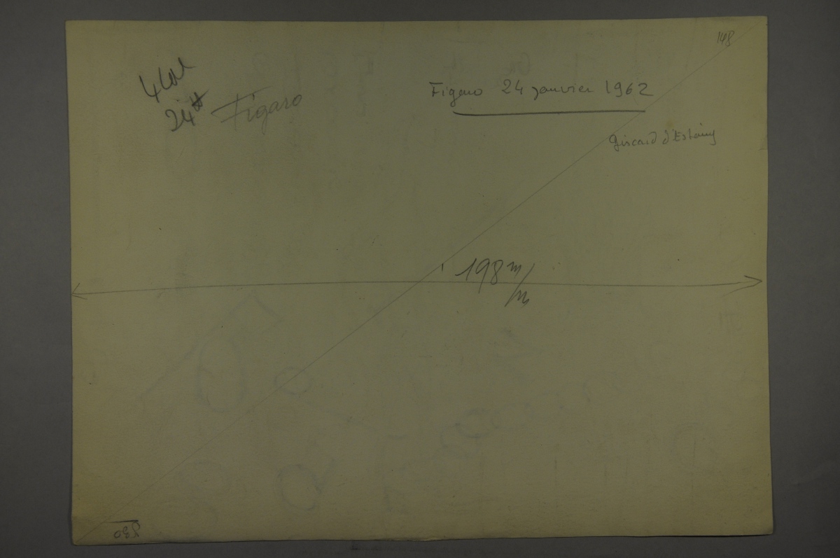 SENNEP. "Les instruments de torture, voici revenue la saison des supplices. Giscard d'Estaing, bourreau des finances." Dessin original à l'encre pour le Figaro du 24 janvier 1962. Signé et titré. 27,5 x 37 cm.