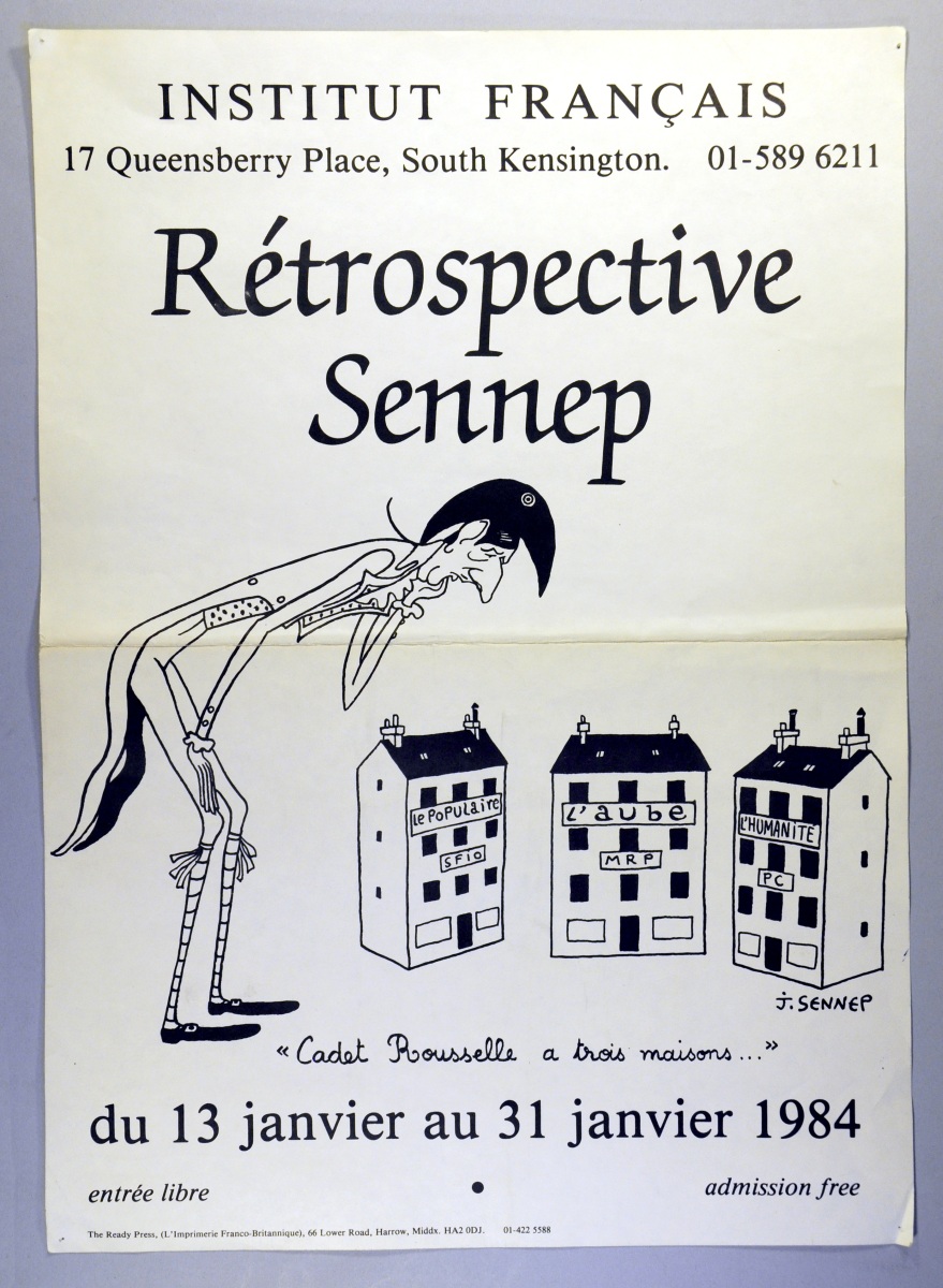 SENNEP. Affiche Rétrospective, Institut Français Londres, 1984. 41 x 29 cm.
