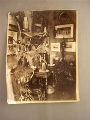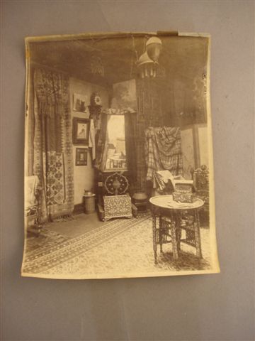 SCÈNES D'INTÉRIEUR À LA PIERRE LOTI. Réunion de cinq photographies représentant des décors d'intérieur inspirés des cabinets des voyageurs de la fin du XIXème siècle. 20,7 x 16 cm. Fin XIXème siècle - début XXème siècle. (pliures).