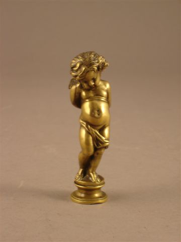 ANGELOT ailé en bronze doré. Repose sur un petit socle en forme de cachet. Haut. 10 cm.
