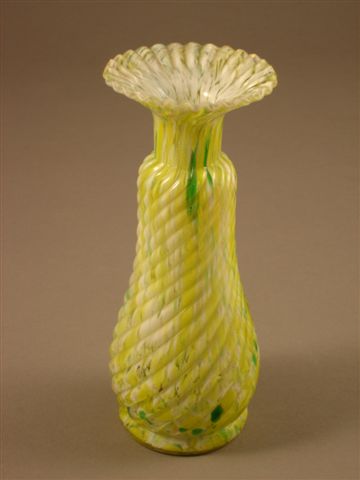 Notre modèle est à rapprocher d'un vase en verre moulé et moucheté de jaune, à panse arrondie et décor spiralé, conservé dans les collections du Musée de la ville de Vierzon (n° Inventaire 1988.6.9).