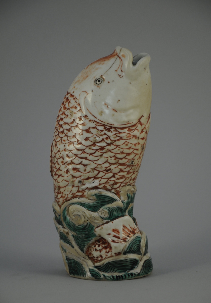 VASE d'applique en porcelaine en forme de carpe.