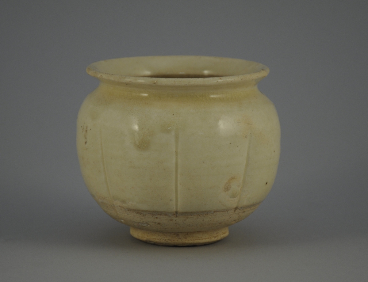 VASE en grès à côtes, à couverte beige.CHINE, dingyao, époque SongHaut.10,5, Diam. 12 cm.