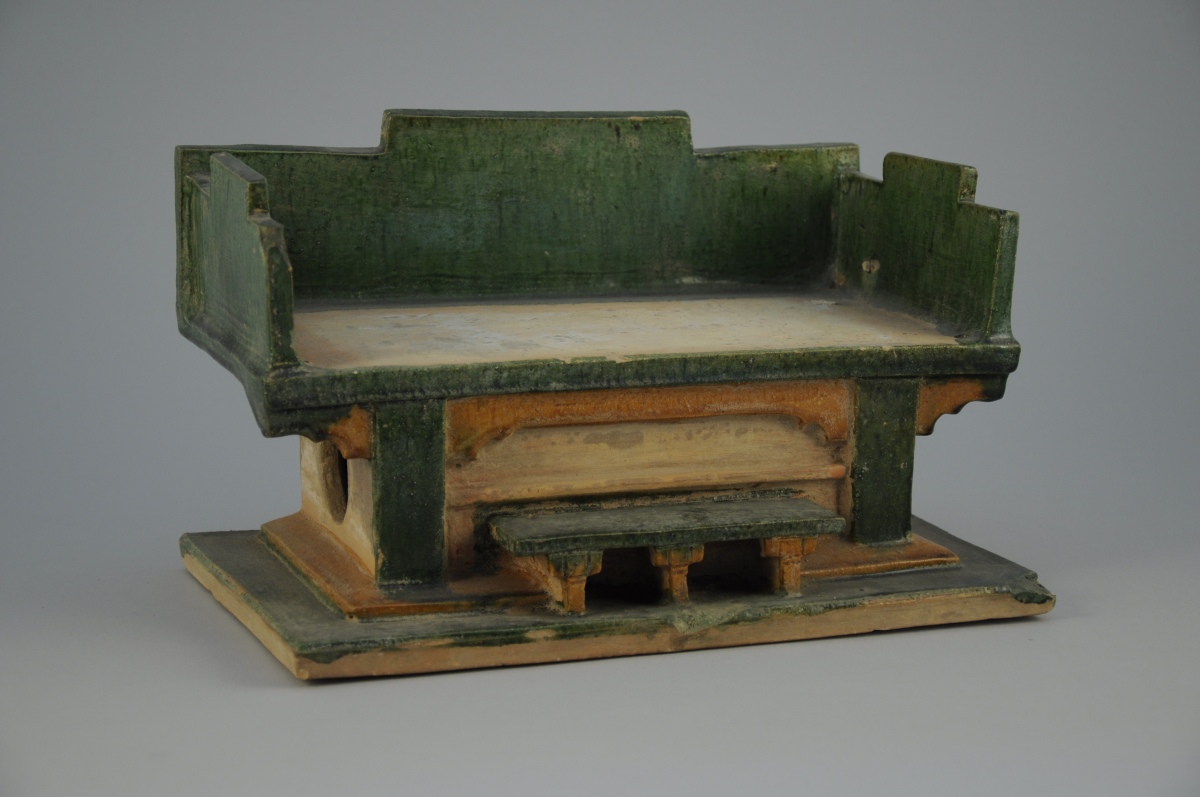 AUTEL en terre cuite de plan rectangulaire, à glaçure partielle de couleur verte