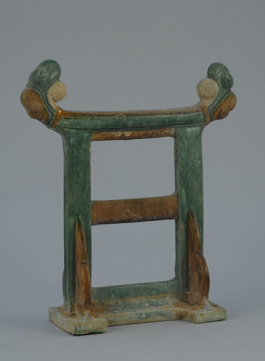 PORTIQUE en terre cuite à glaçure ocre et vert.