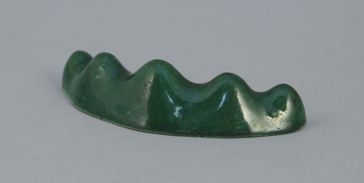 REPOSE-PINCEAUX en forme de colline à cinq pics en porcelaine émaillée vert.