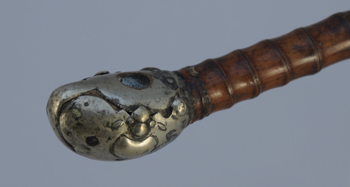 PIPE en bambou à fourneau appliqué de métal gravé et repoussé.