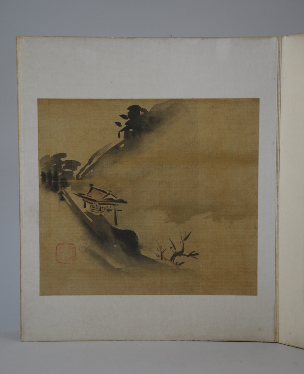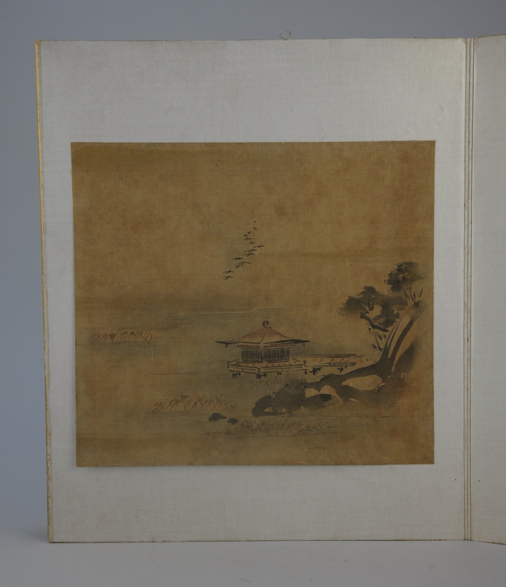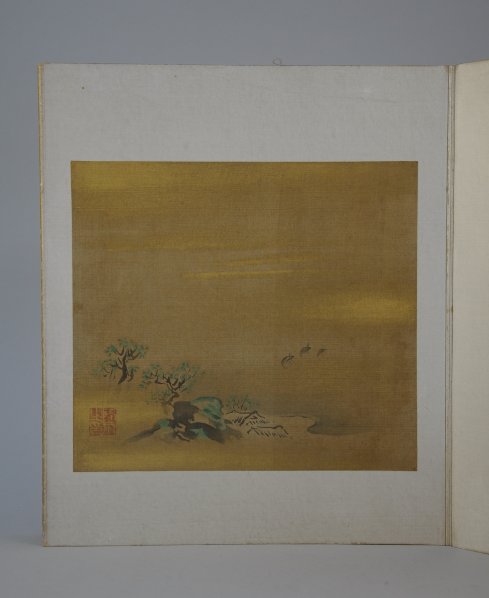 8 peintures sur soie, signatures cachet rouge. Idéogrammes à l'encre en vis à vis.