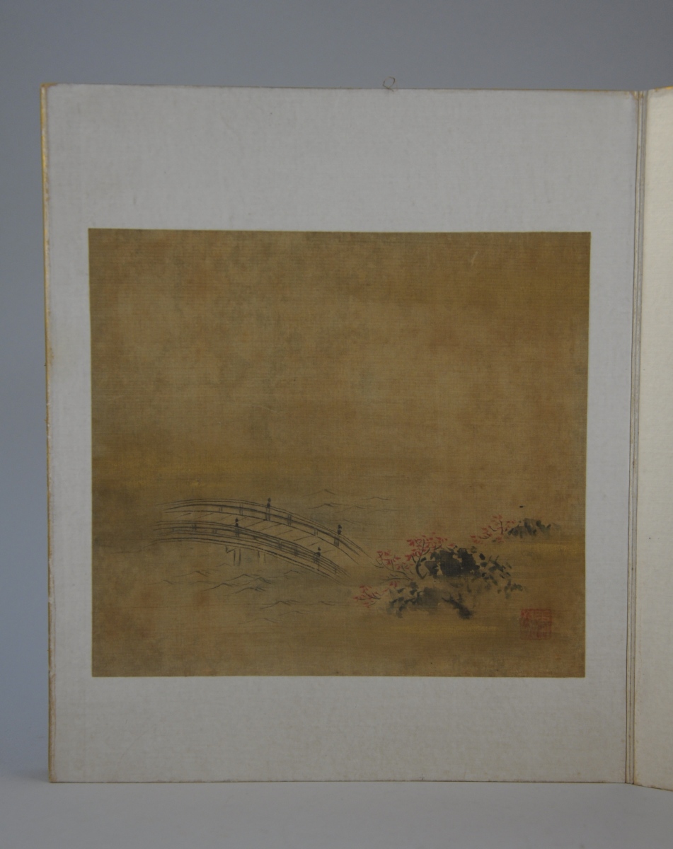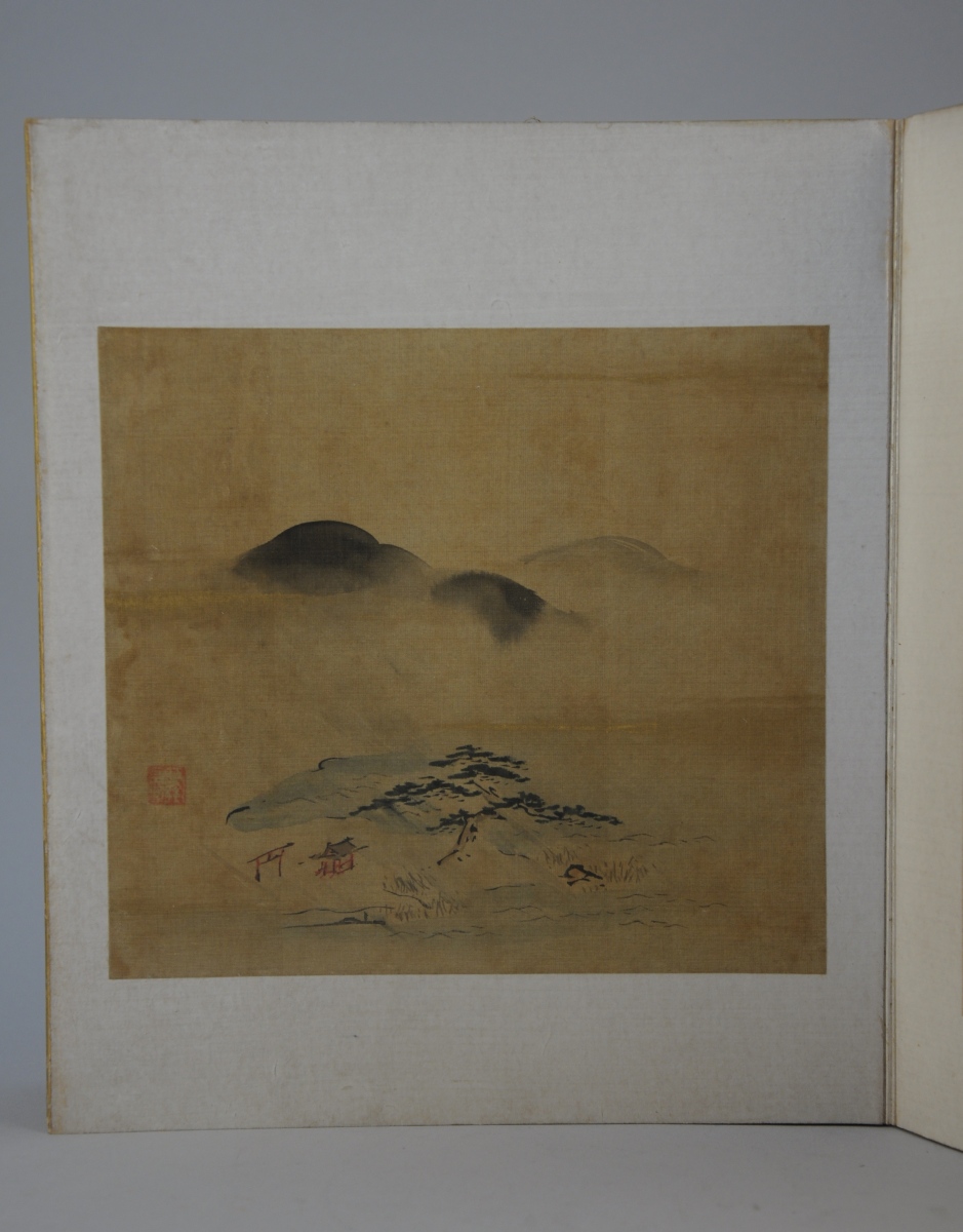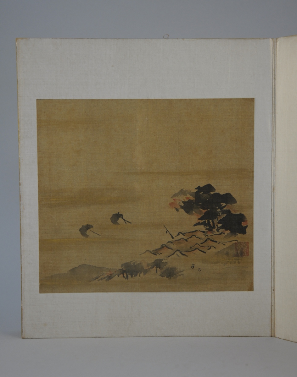 8 peintures sur soie, signatures cachet rouge. Idéogrammes à l'encre en vis à vis.
