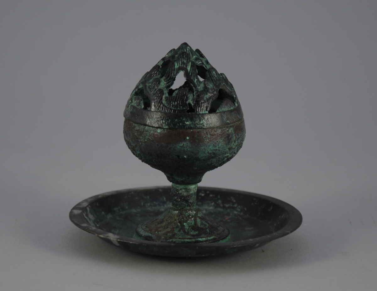 Petit BRULE-PARFUM en bronze à patine verte.