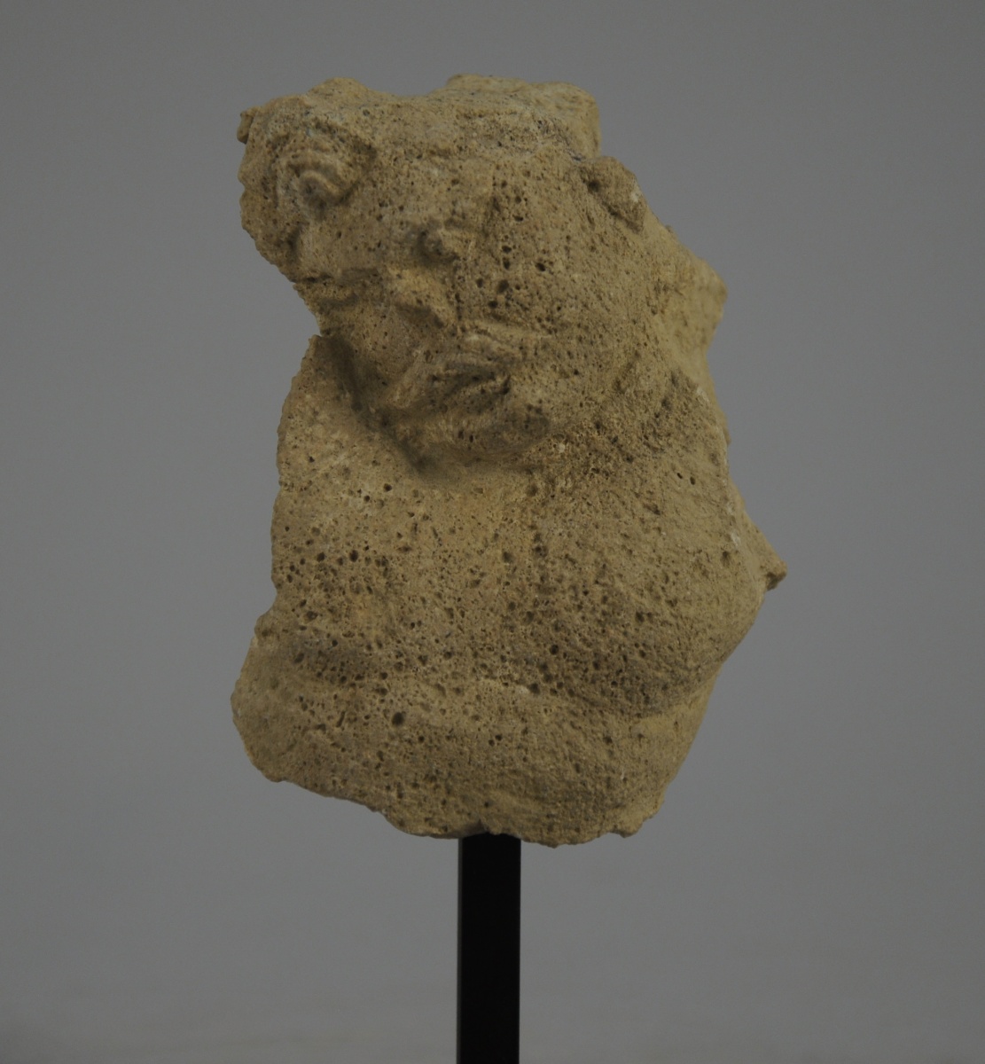 TÊTE D'HOMME portant moustache. Terre cuite.