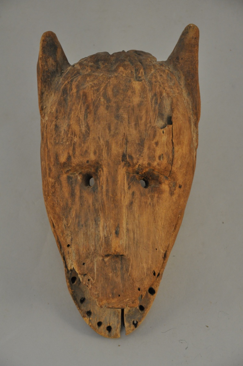 MASQUE zoomorphe oreilles dressées, en bois sculpté.