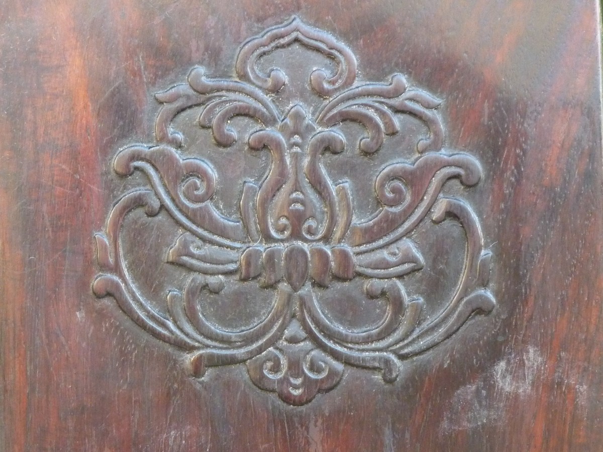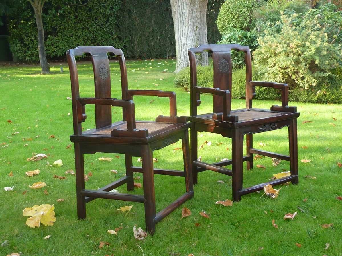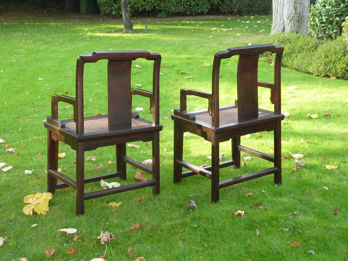 Paire de FAUTEUILS à fonds cannés. CHINE. Haut. 90, Larg. 54,5, Prof. 43 cm.