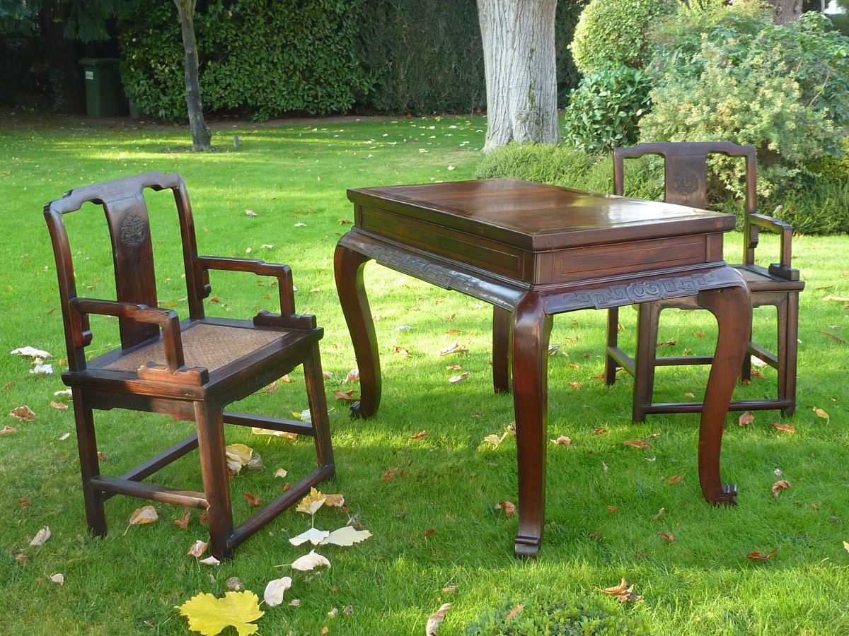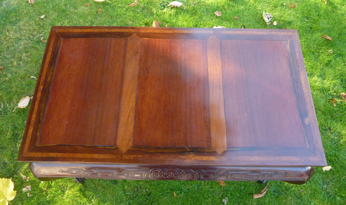 TABLE DE LUTH en bois exotique. CHINE, XIXe. Haut. 79, Long. 120, Larg. 70 cm. Provenance: ancienne collection de son Excellence Monsieur Édouard HUTT, ambassadeur de France à Singapour en 1968-1969.