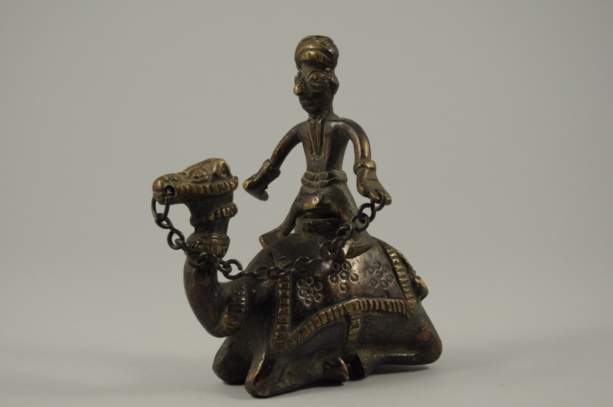 SUJET dromadaire et son cavalier. Bronze. Inde. Haut. 13,5 cm.