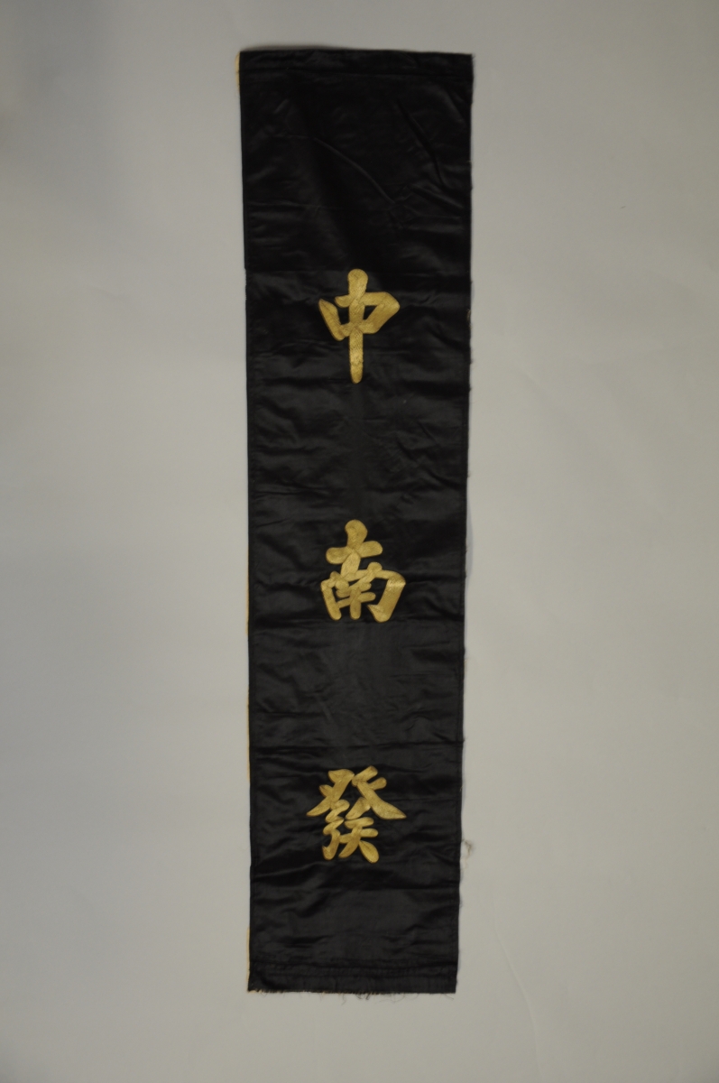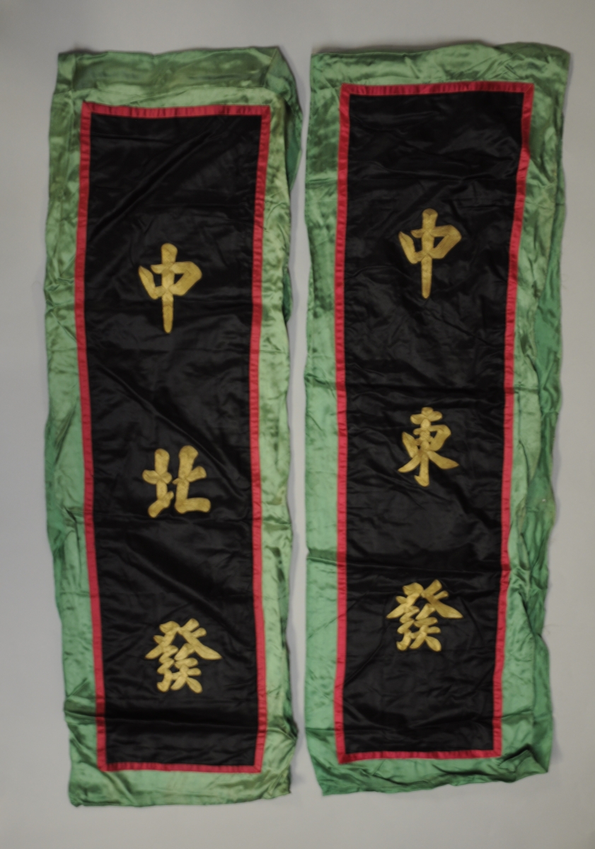 Trois ÉTOFFES brodées. Avec bordures vertes pour deux d’entre elles.