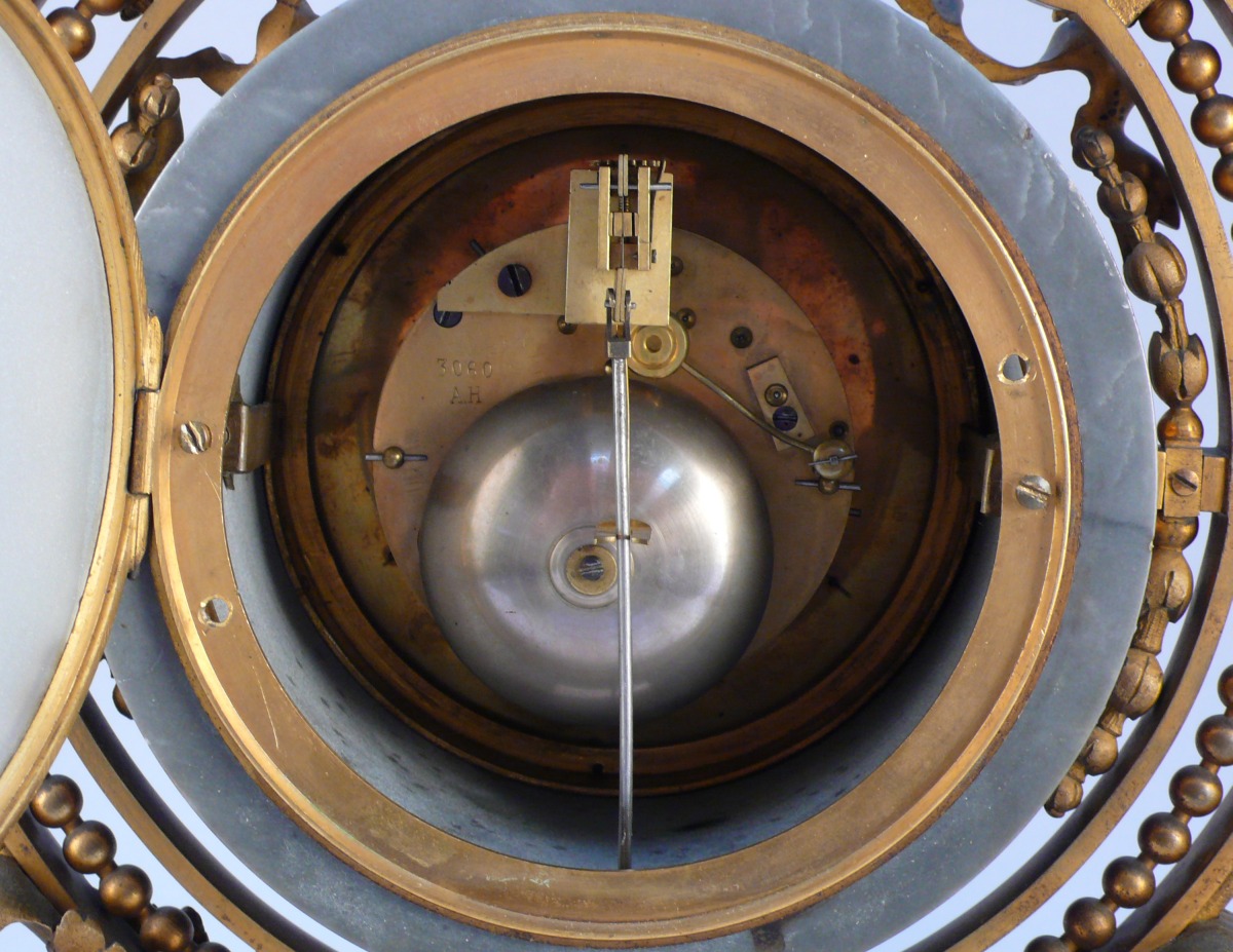 Travail à rapprocher d'une pendule du XVIIIème siècle signée Bourdier illustrée in Les pendules françaises du Moyen-Age à nos jours, de Pierre Kjellberg, p.224.