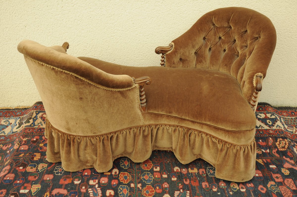 CONFIDENT en palissandre mouluré constitué de deux sièges juxtaposés en sens inverse. Les supports d'accotoirs torsadés.