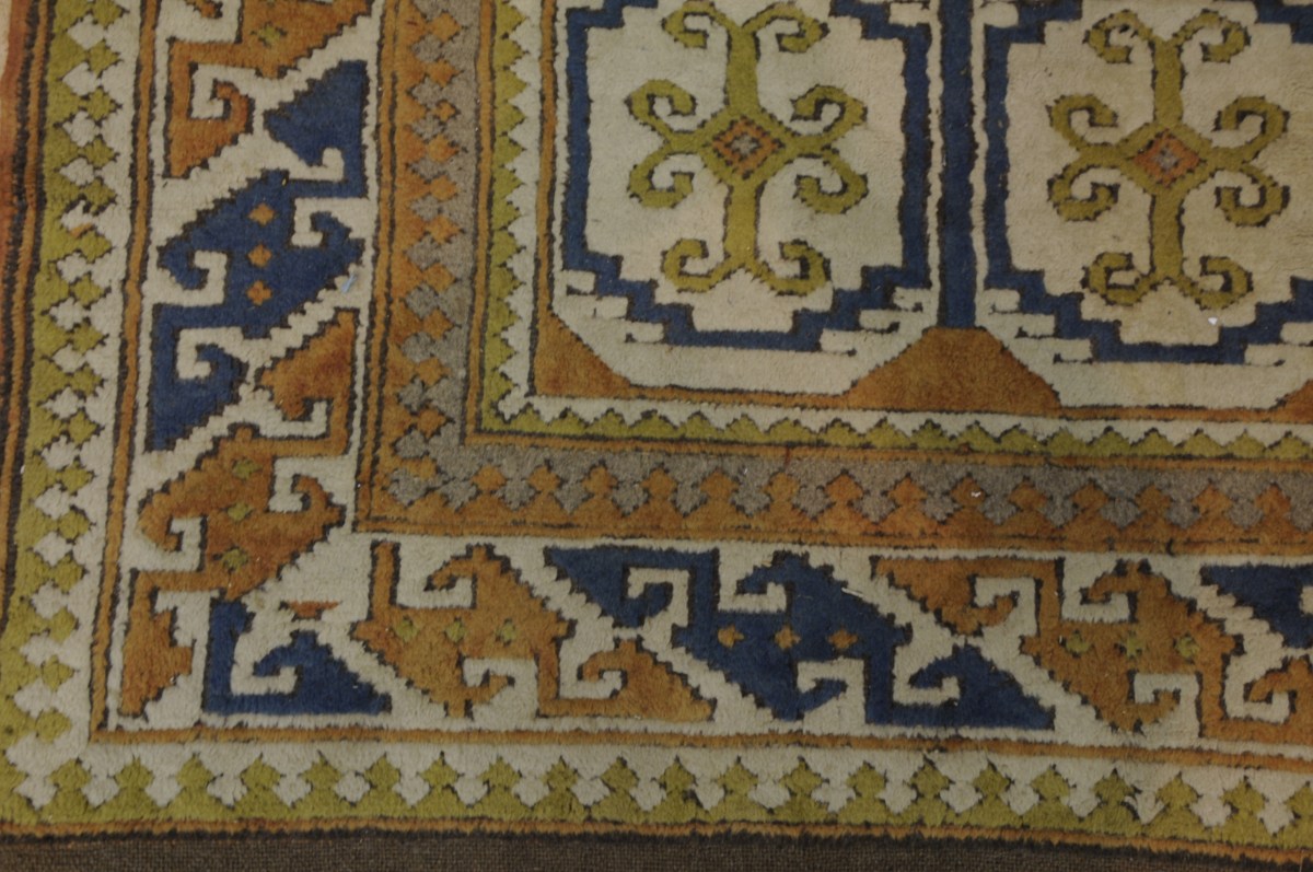TAPIS d'Orient en laine à points noués sur fond orange. Afrique du Nord? Long. 173 Larg 133 cm.