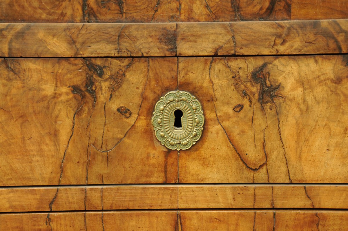 Garnitures de bronze doré telles que chapiteaux de colonnes, poignées de tirage et entrées de serrure. Dessus de marbre noir.