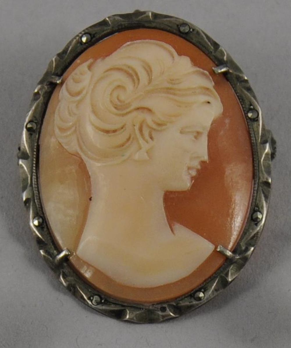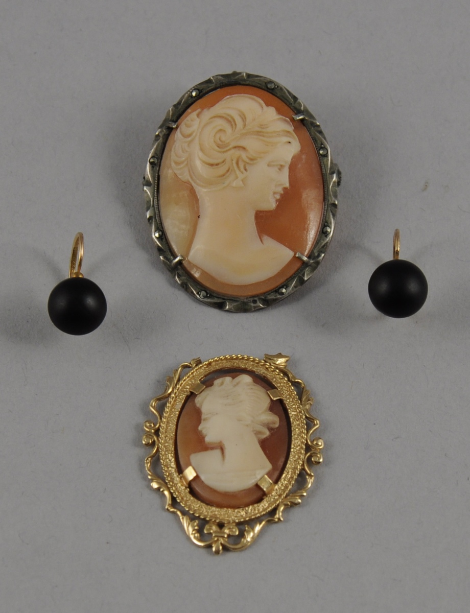 Les camées coquilles représentent chacun un profil de femme. (accident à l'un d'eux)