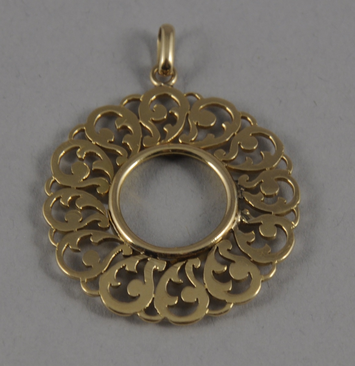 PENDENTIF or, orifice circulaire à décor tournant de motifs ajourés.Poids...