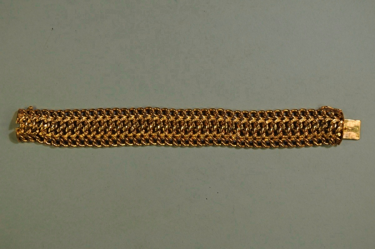 BRACELET ruban en or jaune. Maille souple. Poinçon tête d'aigle.