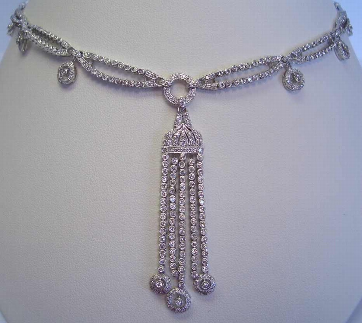 COLLIER draperie en or blanc, orné de 624 diamants de taille moderne pour environ 3,70 carats.