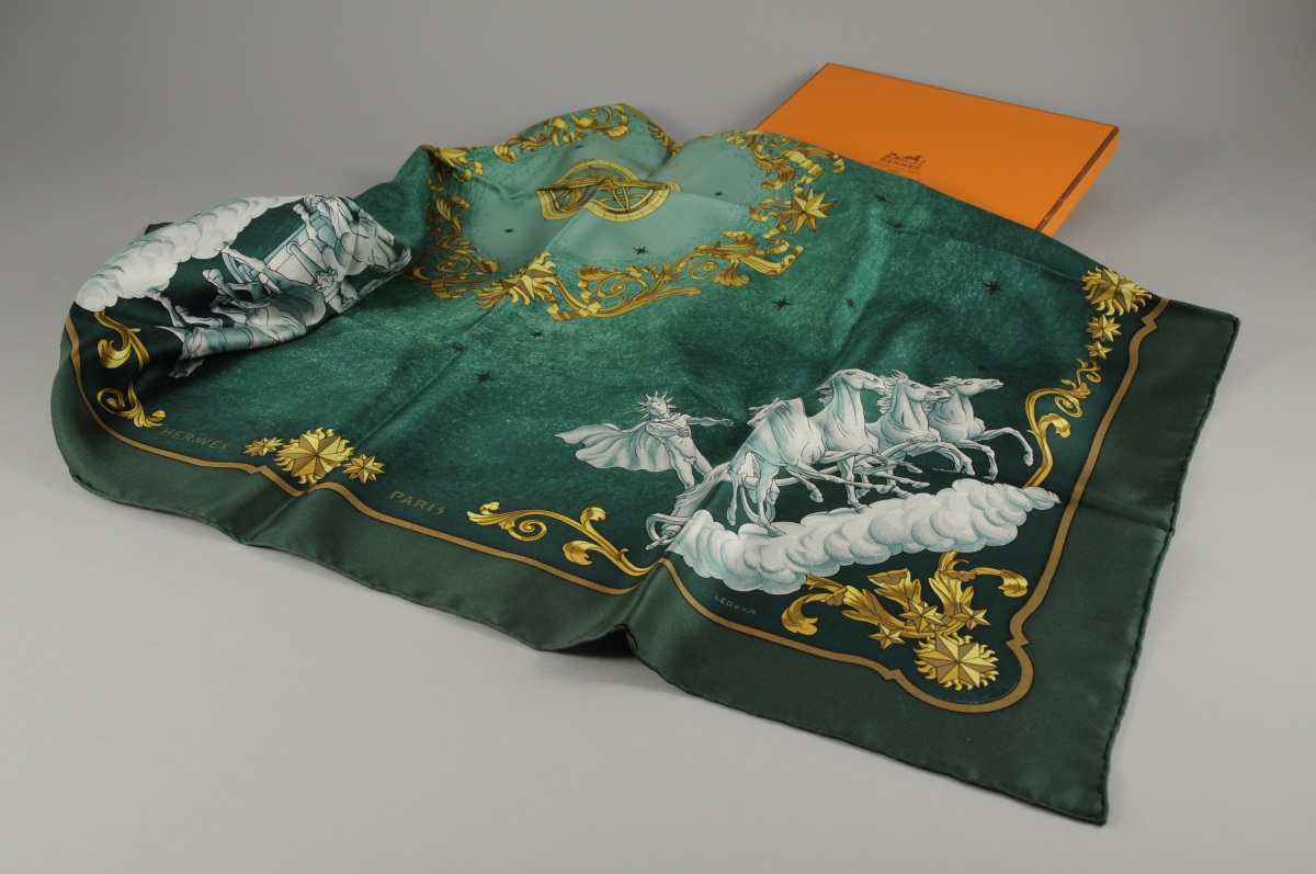 HERMÈS. Carré de soie "Cosmos". Boîte.