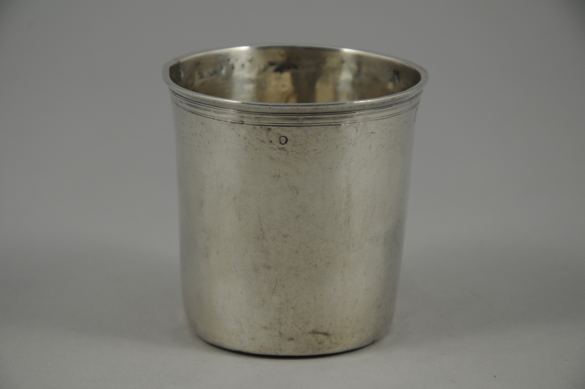 TIMBALE droite dite " de collégien " en argent à décor au double filet. Marque en creux 57.