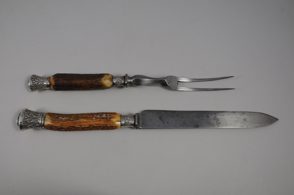SERVICE à DÉCOUPER. Manches en bois de cerf. Viroles et...