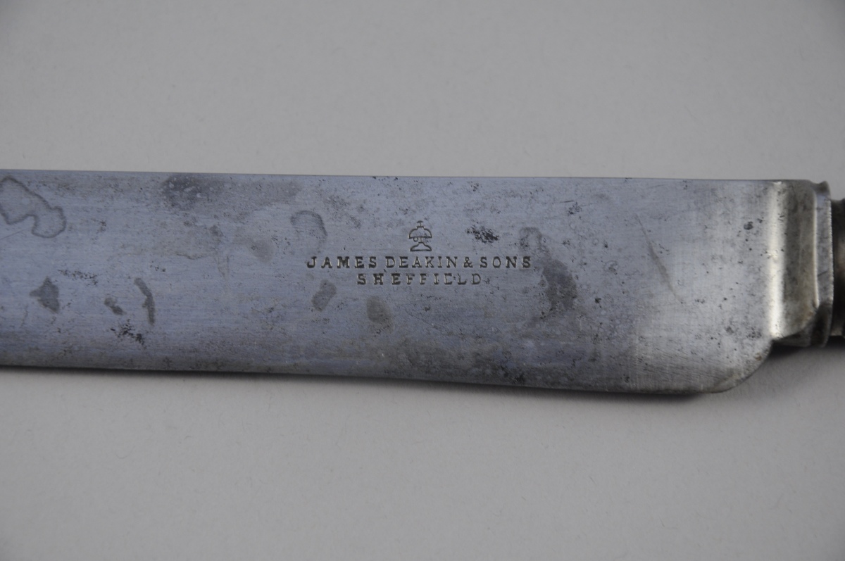Fourchette et lame marquées de James Deakin & Sons, Sheffield.