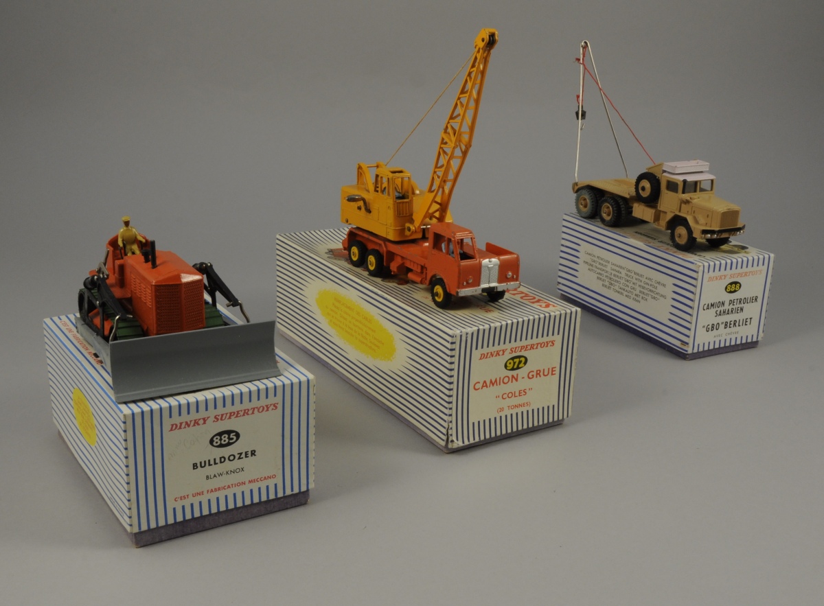 DINKY SUPERTOYS. Réunion de trois véhicules avec boîtes: