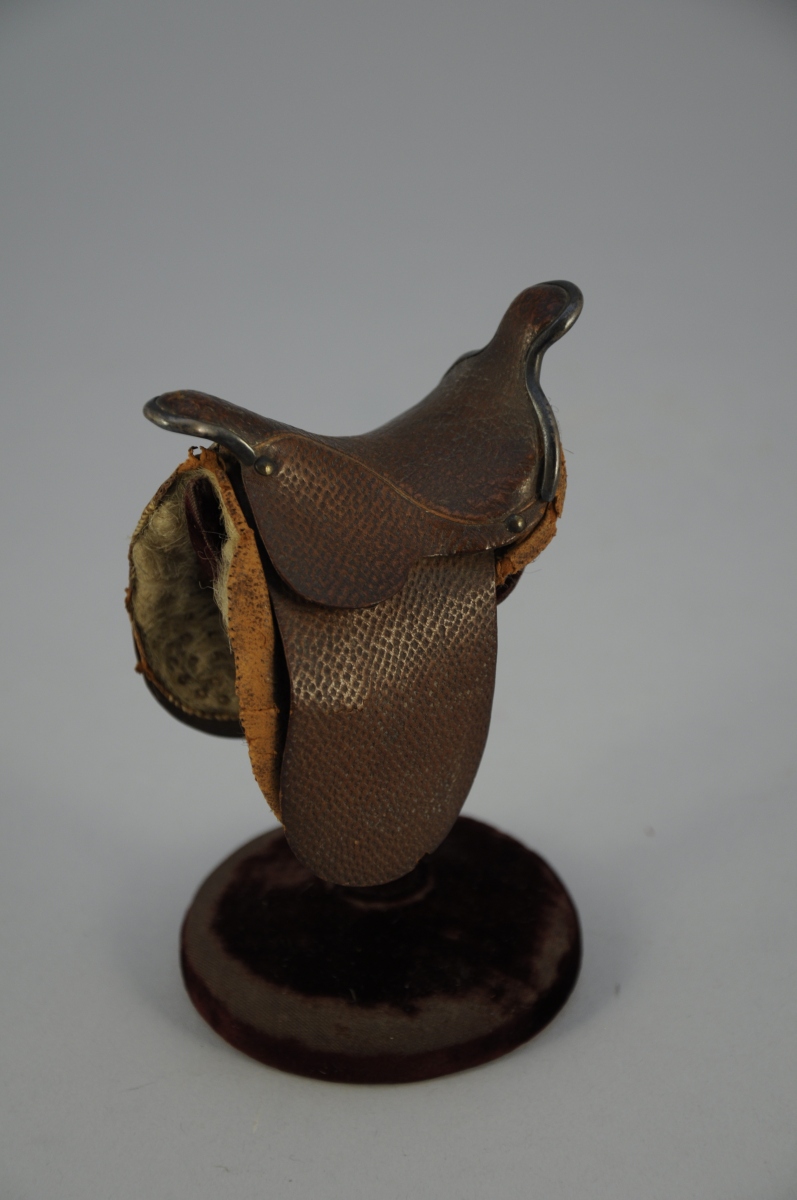 Joint: une selle miniature et son support. Haut. 9 cm.