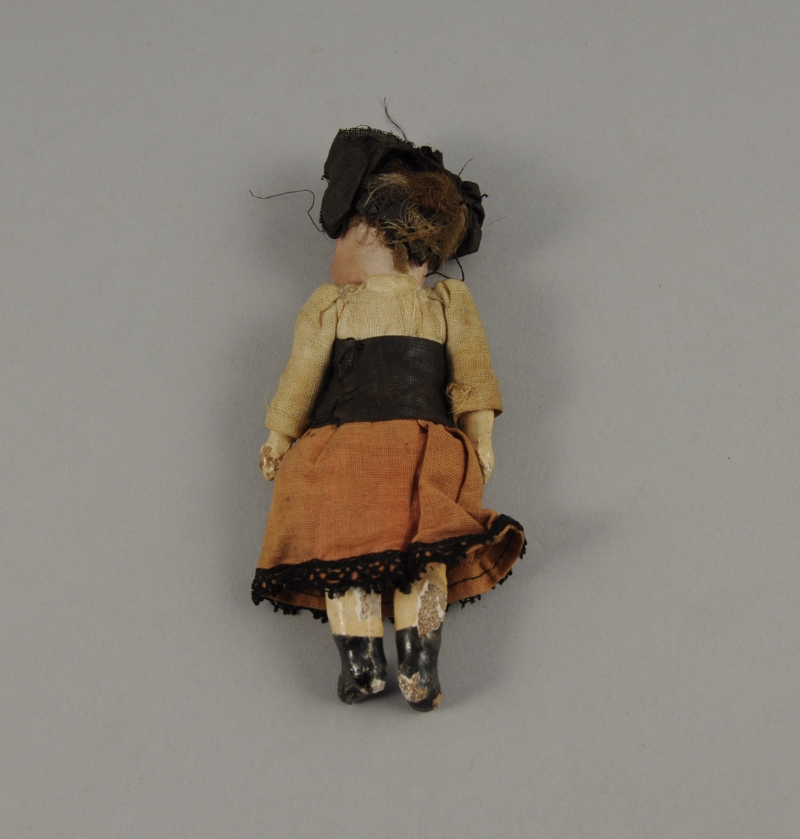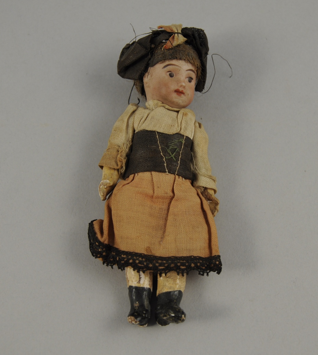 MIGNONNETTE représentant une jeune alsacienne, tête en biscuit et corps en bois peint, cheveux et tissus.