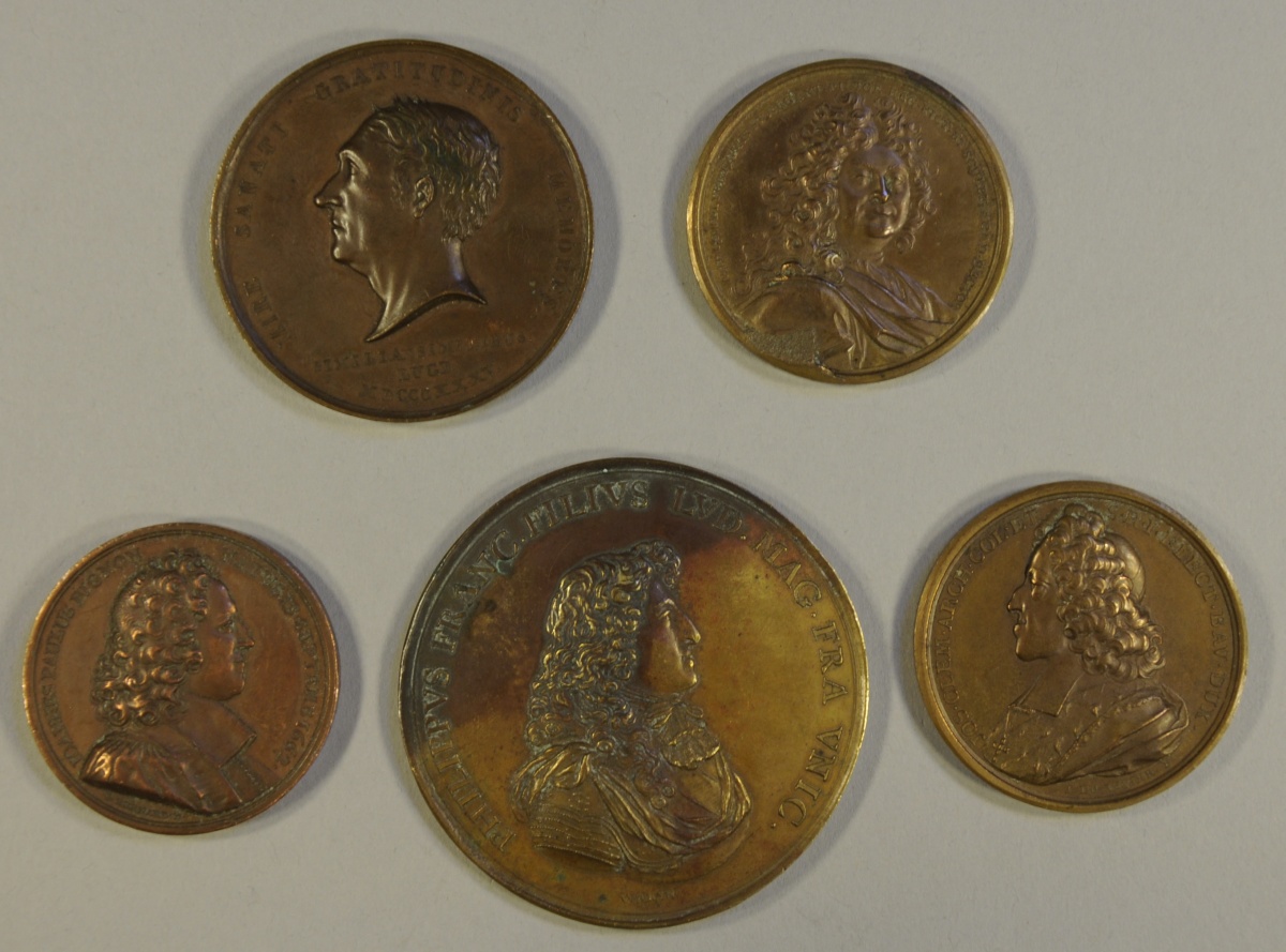 LOT de 5 MÉDAILLES en bronze à l'effigie de personnages illustres: