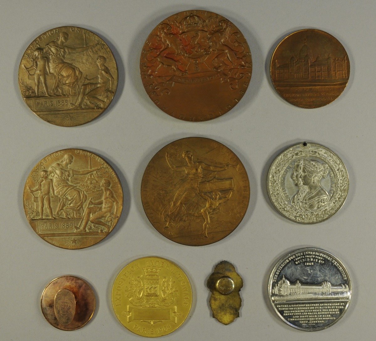 LOT de 8 MÉDAILLES de table sur le thème des Expositions universelles.