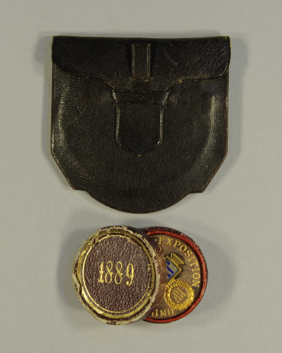 Joint: Un INSIGNE de membre du jury pour l'Exposition Universelle de 1889 et un insigne pour l'Exposition de 1900 par Bottée et Christofle.