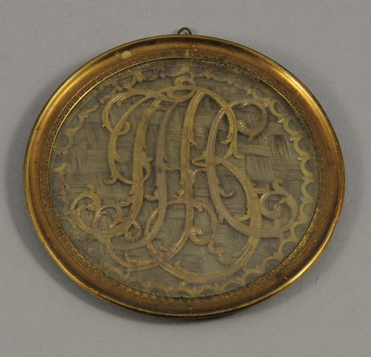 MÉDAILLON aux chiffres "B H" en or, sur fond de cheveux (?) en treille.