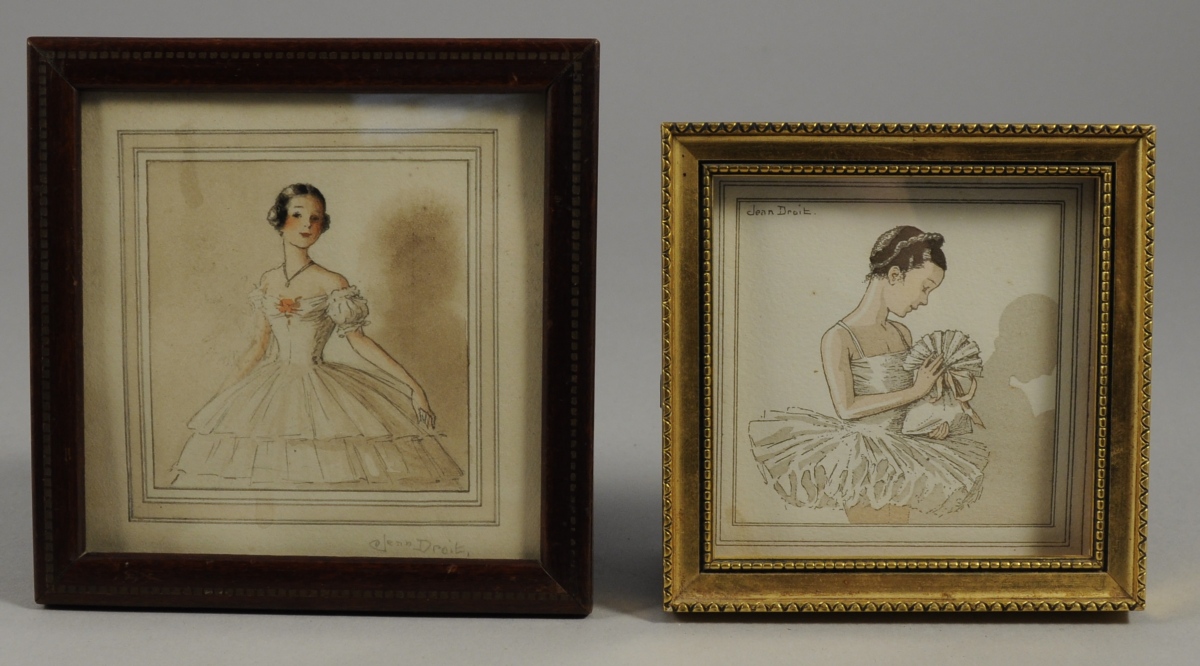 Joint: Gravure d'après Jean Droit, Jeune fille au tutu. 7 x 7 cm. Encadrée.