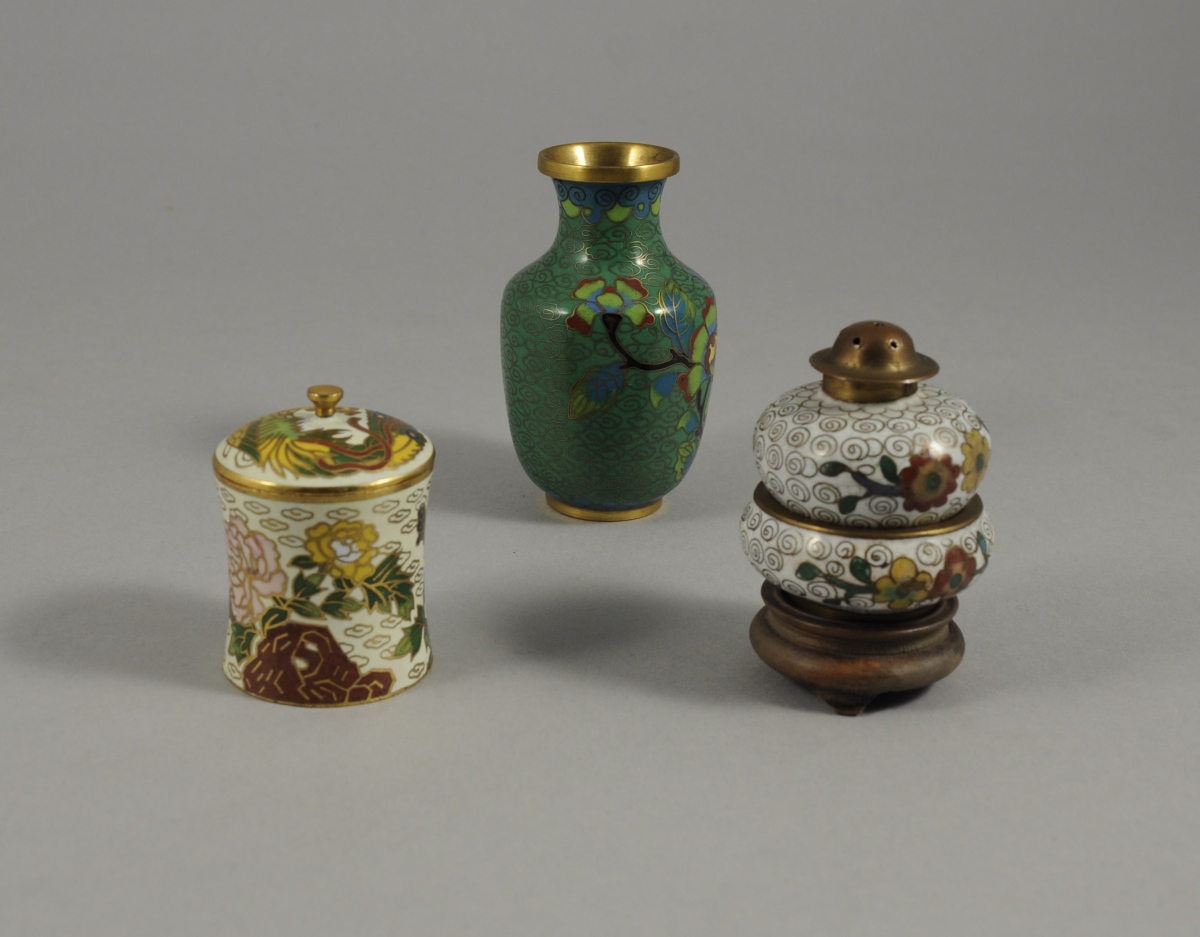 Réunion de trois objets décoratifs à décor d'émaux cloisonnés: