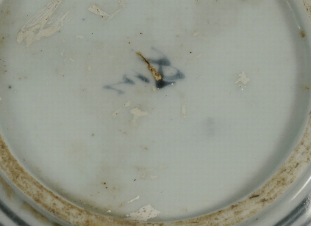 Réunion de deux SOUCOUPES en porcelaine à décor en camaïeu...