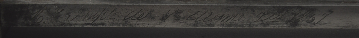 BAÏONNETTE "Chassepot", modèle 1866. Dos de lame marqué "Mre Imple de St-Etienne 1867". Avec fourreau (numéro différent de celui de la lame).