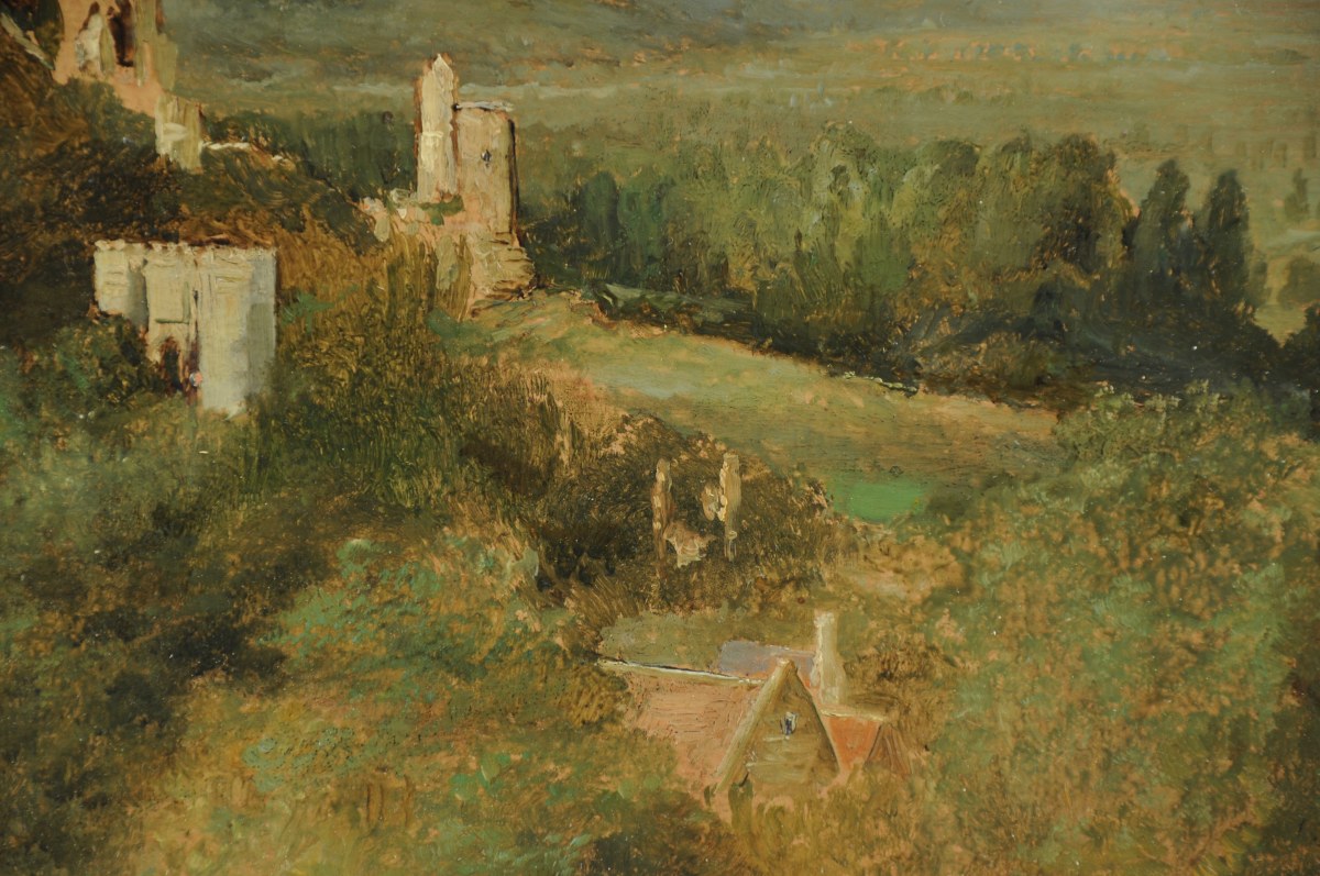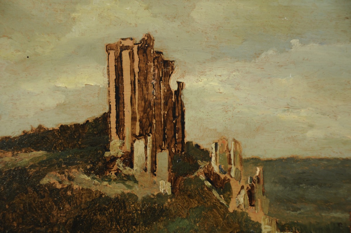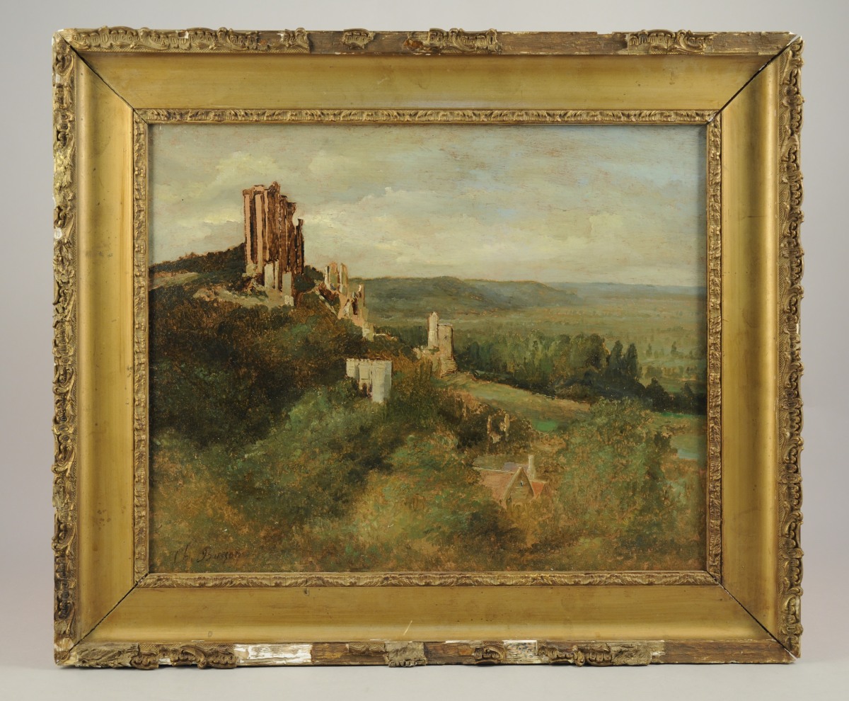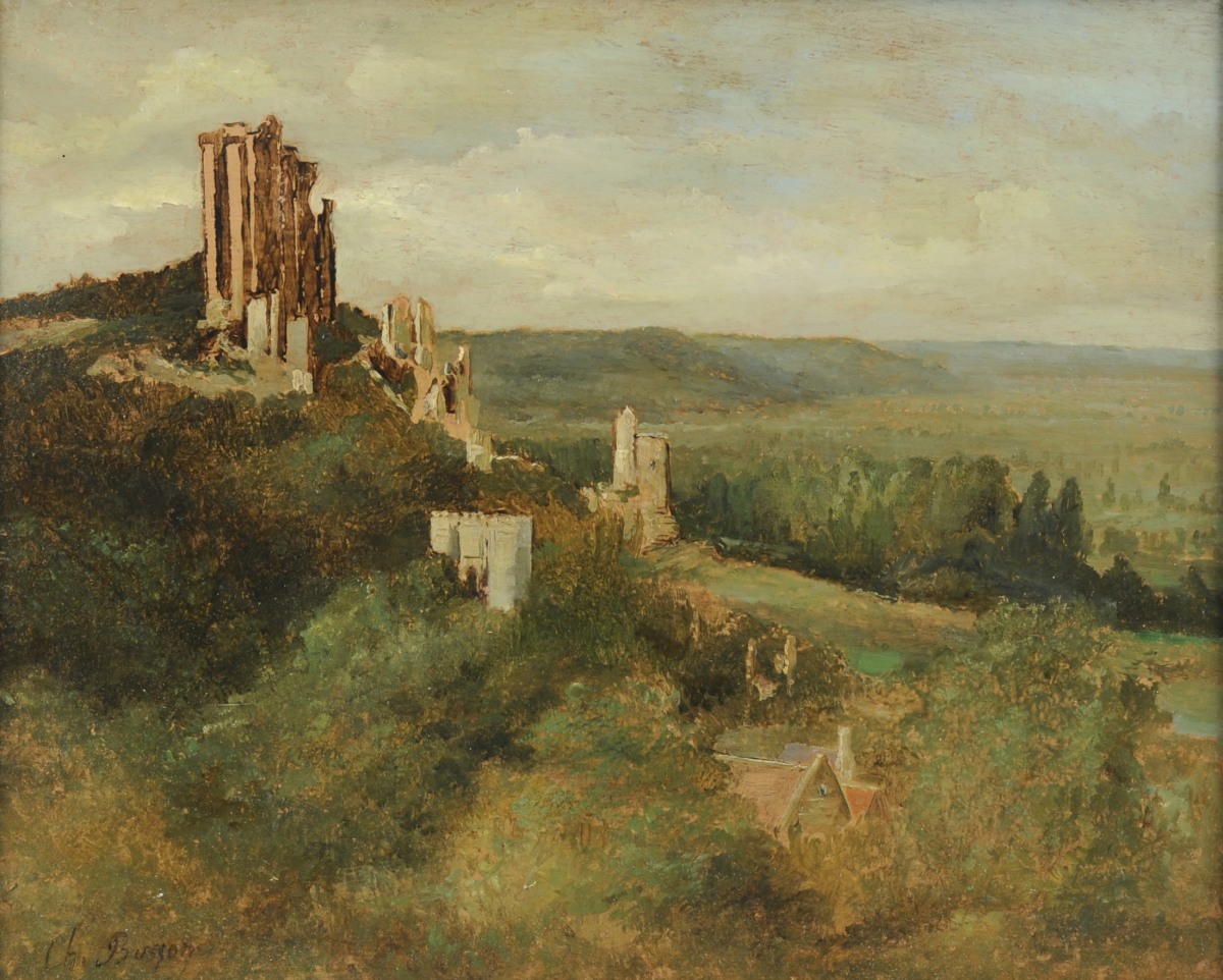 BUSSON Charles (1822-1908).Le château de Lavardin.Panneau signé. 33 x 41...